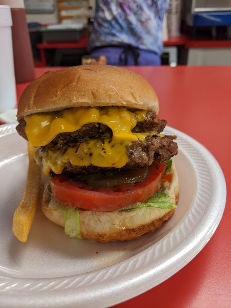 An awesome place for çheeseburgers done right. Fresh, handmade patties, cooked to perfection. Add fries or onion rings for a great lunch. Staff was very friendly and attentive. Thanks.