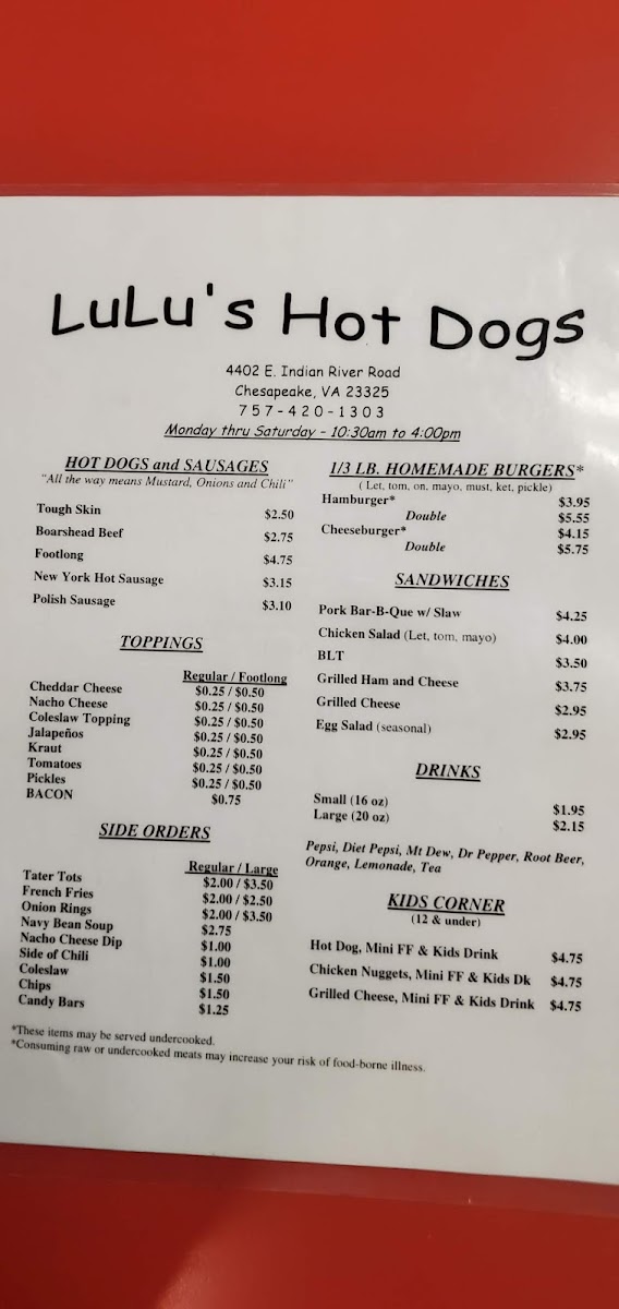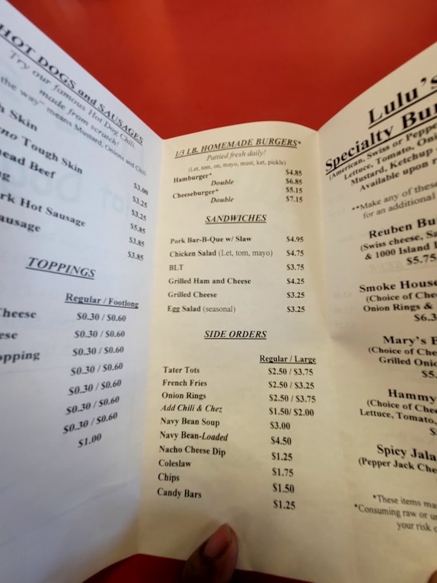 The menu at Lulu’s Hotdogs offers a straightforward selection of classic American comfort foods, ideal for casual meals that satisfy both quick bites and relaxed family gatherings. You’ll find a variety of hot dogs and burgers, each served with familiar regional toppings and sides that complement a laid-back, friendly atmosphere.